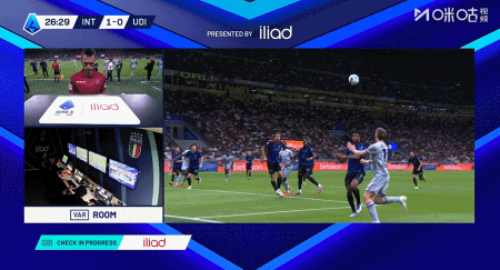 第17分钟,图拉姆助攻,邓弗里斯破门先拔头筹,国米1-0乌迪内斯